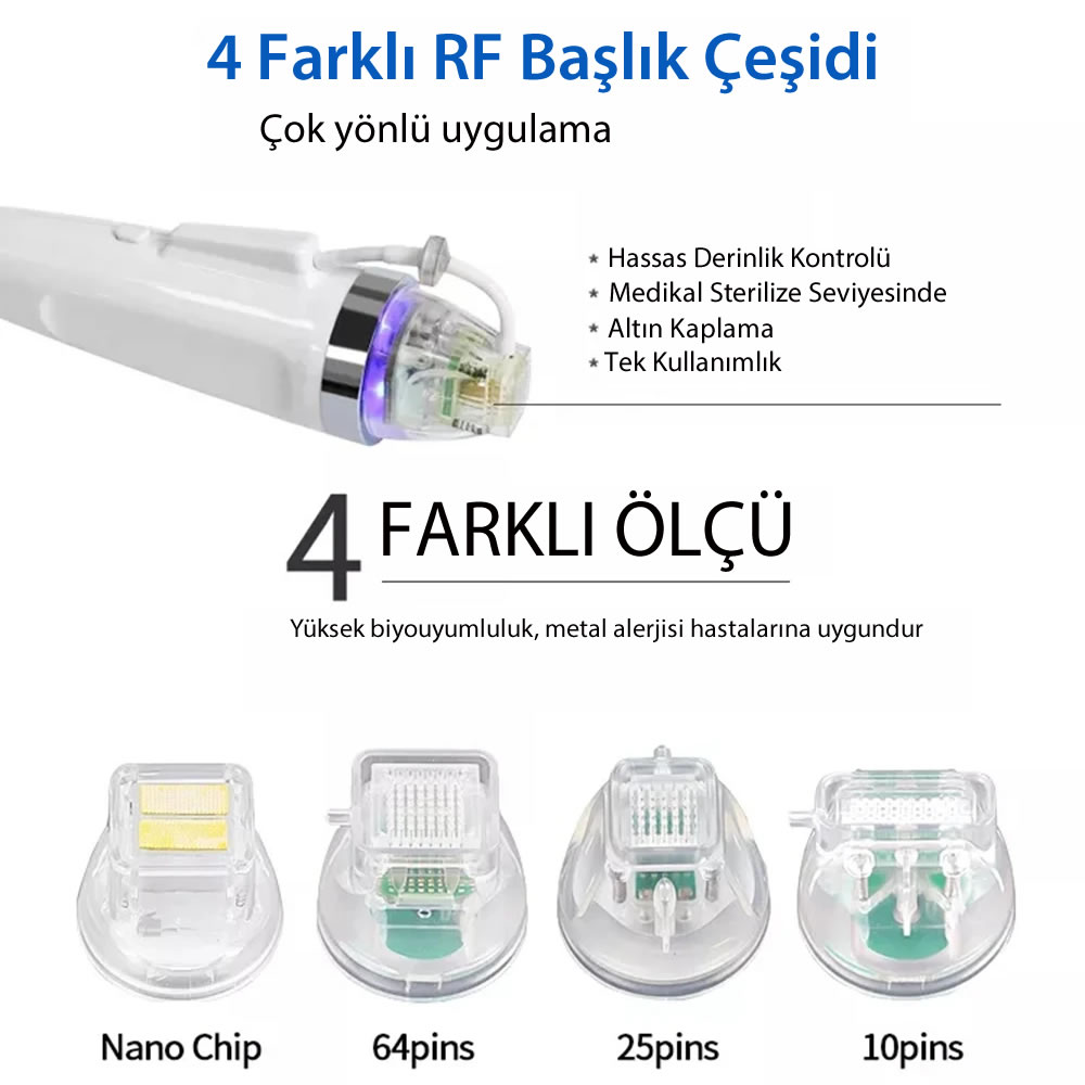 - Altın kaplama mikro iğnelerle hassas ve etkili işlem sağlar.
