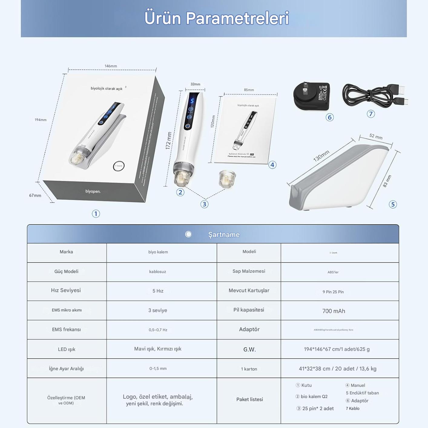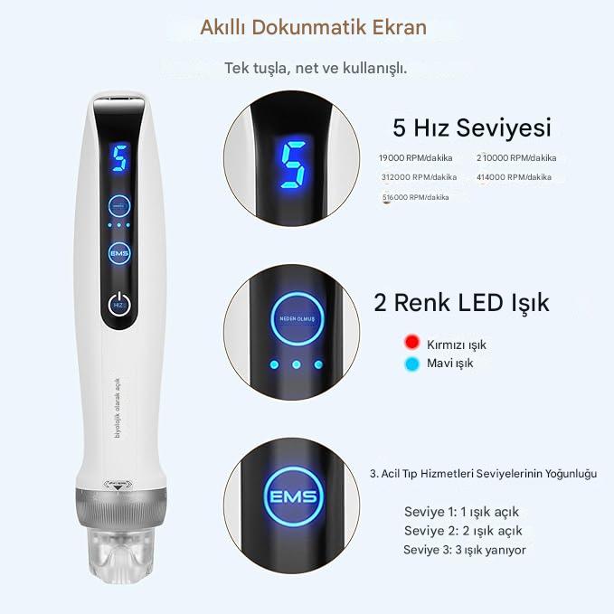 Bio Pen Q2 Microneedling (Altın İğne) Cihazı gelişmiş teknolojilerle donatılmış mikro iğneli elektrikli dermapen cihazı, cilt yenileme, saç,akne izi giderme ve anti-aging uygulamaları için geliştirilmiş profesyonel bir dermapen cihazıdır.Mikro iğneleme teknolojisi sayesinde cilt yüzeyinde kontrollü mikro kanallar açarak kolajen ve elastin üretimini tetikler, böylece daha sıkı, pürüzsüz ve sağlıklı bir cilt görünümü elde edilmesine yardımcı olur.Microneedling, EMS elektroporasyon ve LED ışık teknolojisini tek cihazda birleştirerek profesyonel sonuçlar sunar.